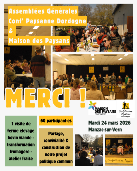 L'Assemblée Générale de la Conf' Dordogne et de la Maison des Paysans, c'est le mardi 24 mars à Manzac-sur-Vern !